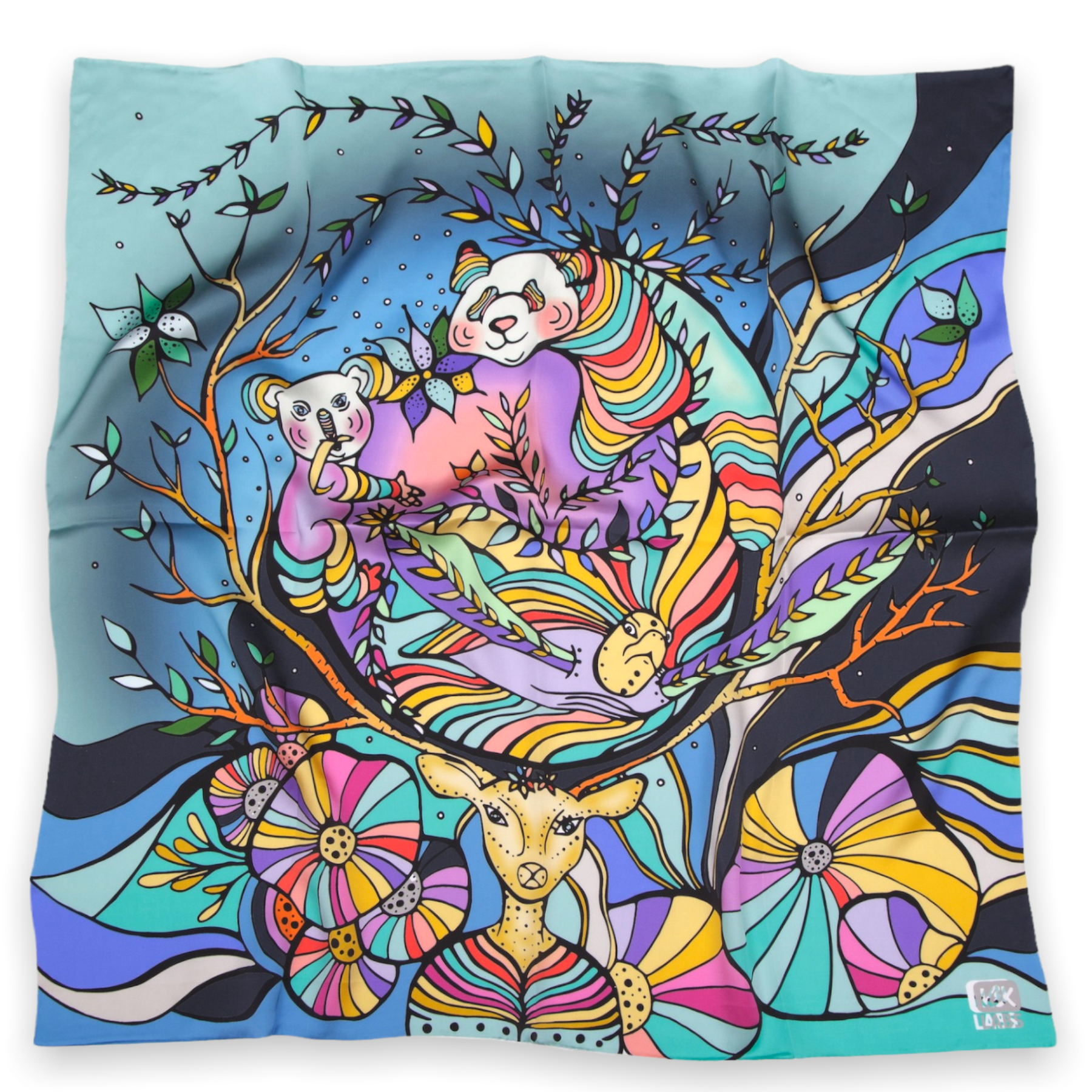 k_klabssilkscarves2022-carterskingdom-blue-panda-koala-turtle-deer-illustration