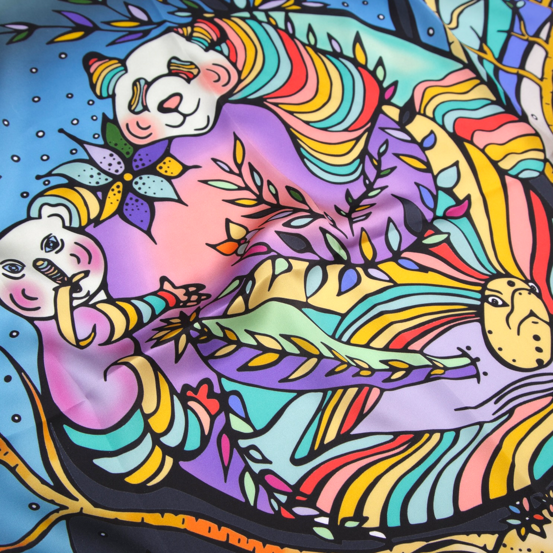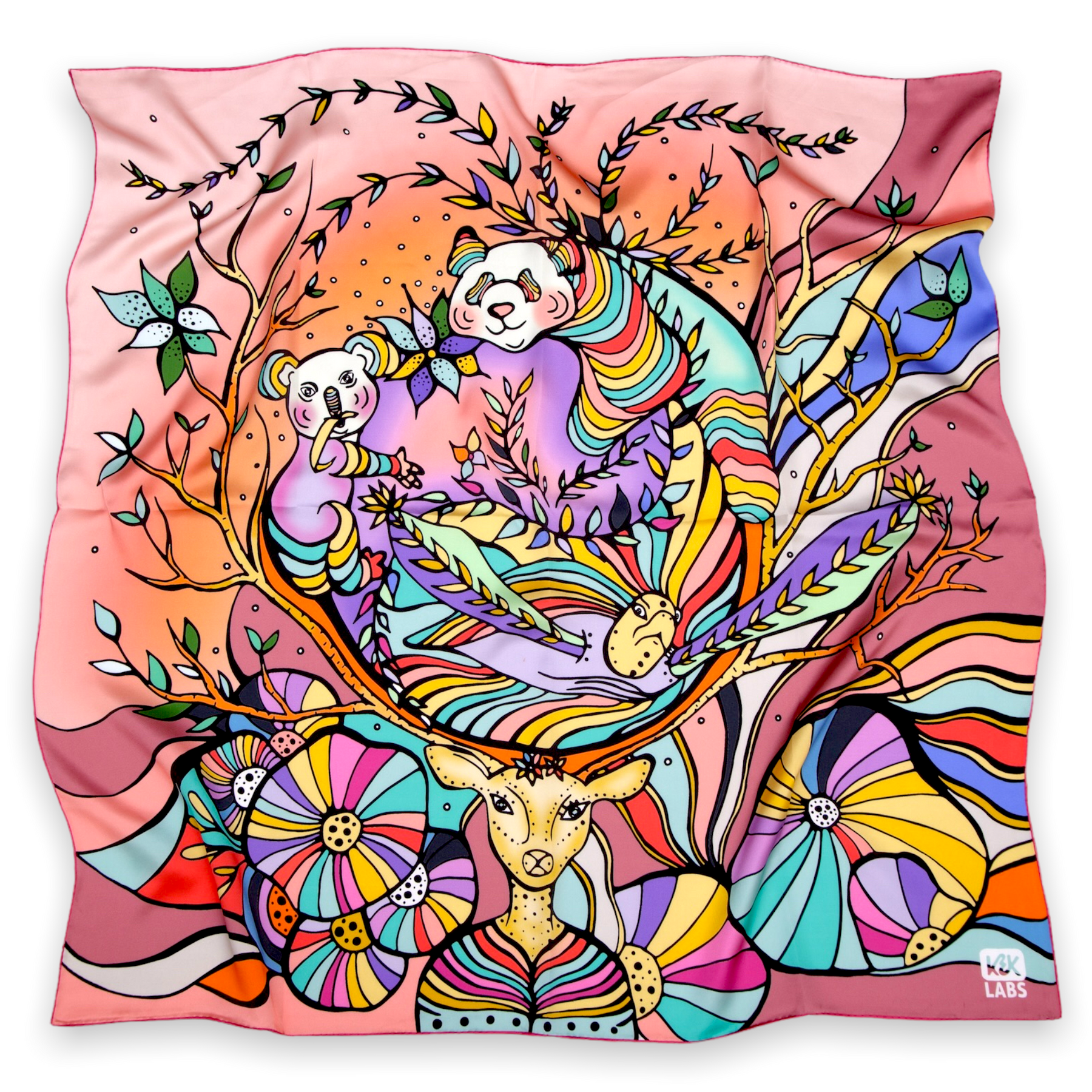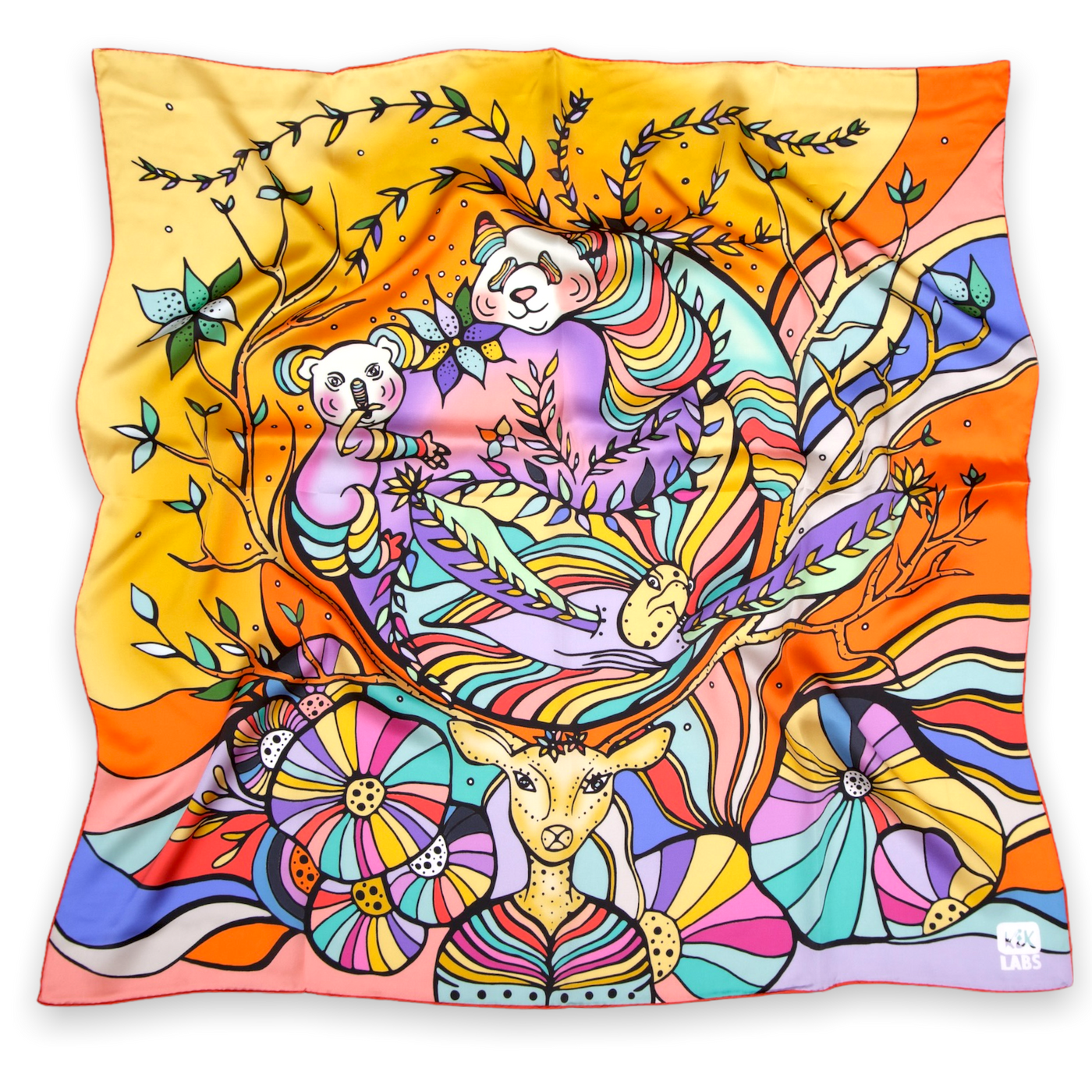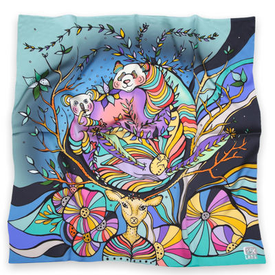 Help raise awareness for threatened species by wearing a beautiful silk scarf featuring a stag, koala, Panda and turtle. The perfect gift for someone who loves animals or beautiful design, this scarf makes a truly unique present for any animal lover or wildlife enthusiast.